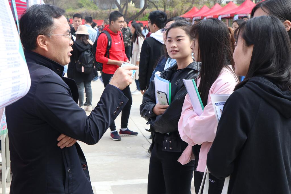 校党委常委、副校长赵有翼在“双选会”现场,与多家用人单位进行了深入洽谈,详细了解用人单位需求及毕业生就业情况。省人力资源市场还设立了政策咨询台,现场为高校毕业生进行免费的就业服务和相关政策咨询服务,让用人单位和广大高校毕业生在洽谈就业的同时,进一步了解了省人力资源市场的各种延伸服务。