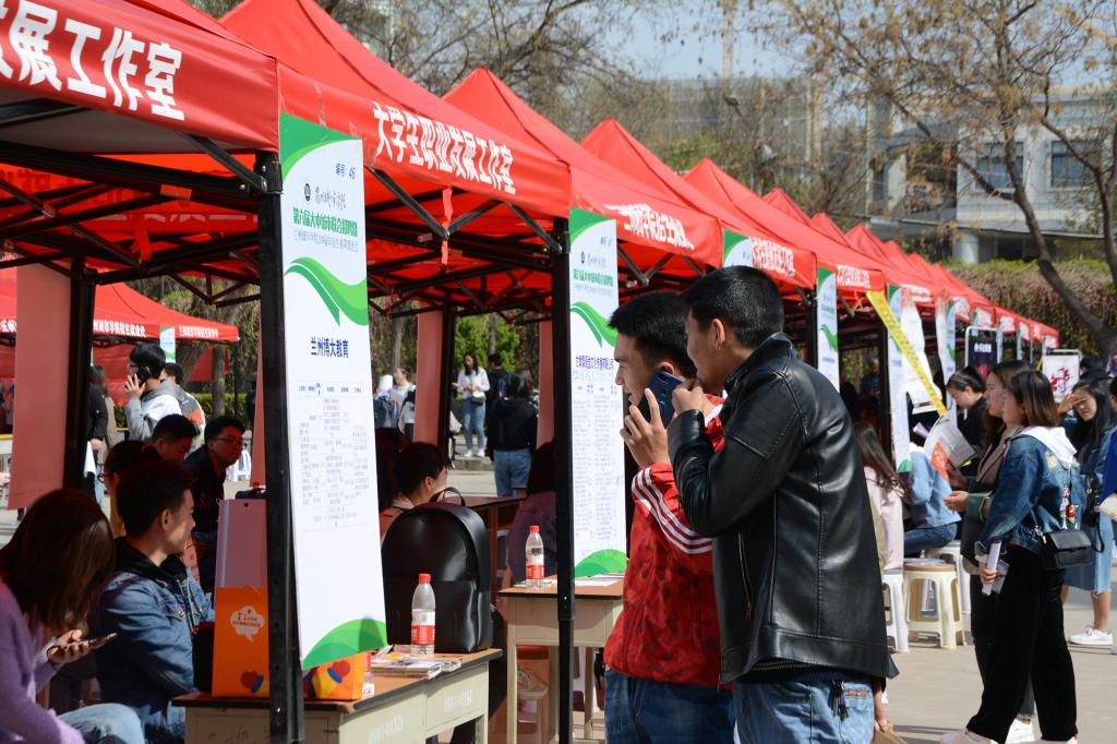 4月14日,“第六届大中城市联合招聘暨taptap点点2019届毕业生春季双选会”在校本部二号行政楼前广场举行。本次“双选会”作为“第六届大中城市联合招聘高校毕业生春季巡回招聘(甘肃站)”分会场之一,共邀请到沧州市人力资源市场、临汾市人才交流服务中心、新疆生产建设兵团、中国水利水电第一工程局有限公司、清远市广铁一中外国语小学等85家企事业单位参会,共计提供岗位5000多个。学校招生就业处和部分二级学院负责人及来自省内外高校的一千多名毕业生参加了“双选会”。据不完全统计,用人单位共收到简历600多份,达成就业意向200多人。当天下午,有关用人单位进行了相应的面试工作。