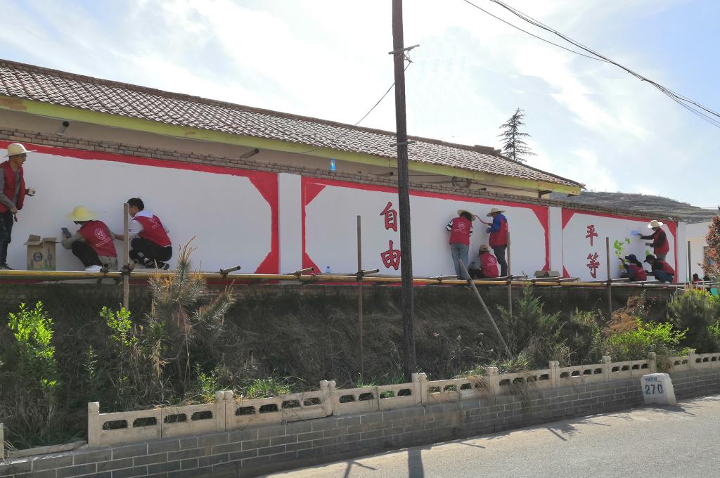 为确保绘墙质量与效果,学校驻村帮扶干部和绘制墙绘师生一起认真研究分析每个学校的建筑风格与特点,并根据小学生的兴趣特点,精心设计绘画主题,科学进行构图和分工,在不到三天的时间内,美术与设计学院师生共绘制近1000平方米的学校墙面,特别是精心构思的社会主义核心价值观、传统文化和小学生健康成长等内容得到郭嘉镇学区领导和师生高度好评。