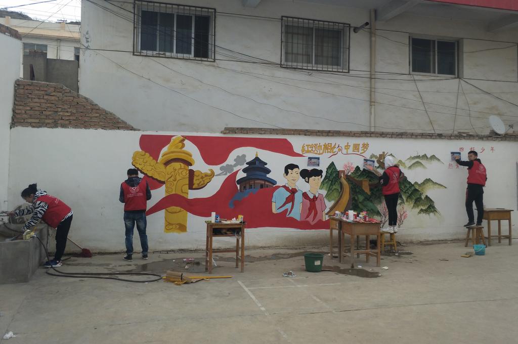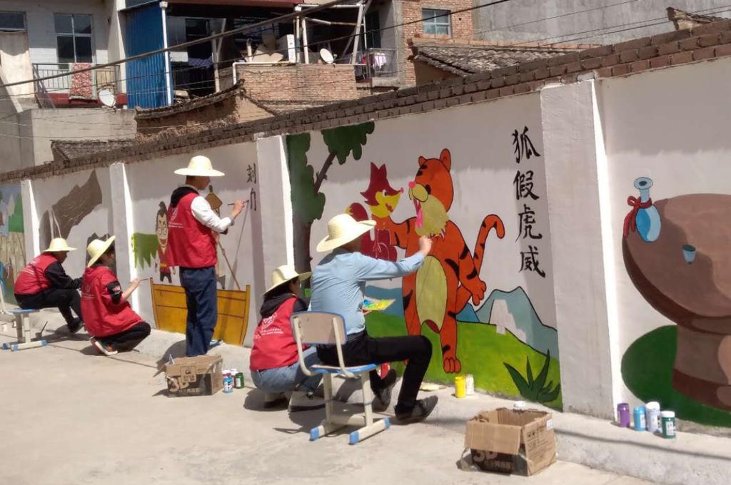 为美化乡村小学校园环境,把教育扶贫、文化扶贫落到实处,应学校精准扶贫帮扶点秦安县郭嘉镇学区的邀请,4月12日-14日,学校组织美术与设计学院32名师生对郭嘉镇寺咀、窝垛、槐庙等四所小学的校园墙面进行了彩绘美化活动。