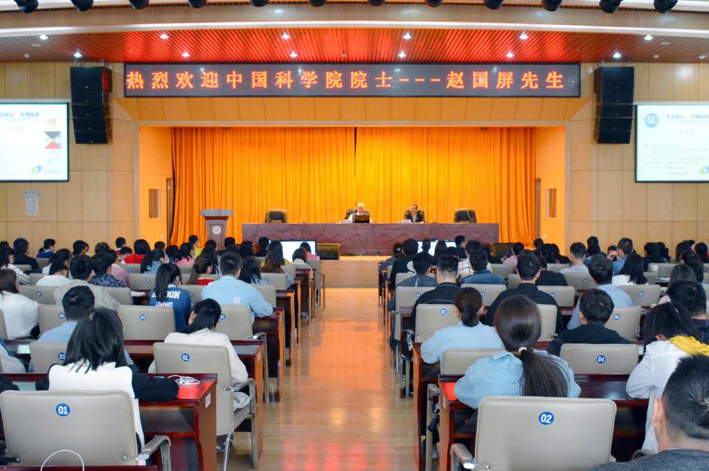 报告会上,赵国屏先生回顾了自己矢志不渝从事生命科学的奋斗岁月和心路历程。他介绍了自己的研究背景,深入浅出地分析了目前国际前沿学科的发展现状、发展趋势及应用前景,并结合自己的求学之梦、建设之梦、创新之梦、改革之梦以及丰富的人生经历,阐释了什么样的人生是有意义的。他强调,过去的几十年,正是因为自己热爱祖国、热爱生命科学之心不改,才在攀登生命科学研究高峰和服务人民的过程中体会到了奋斗的幸福。在谈到新时代青年如何成长的问题时,赵国屏先生提出了四点意见:始终坚持胸怀大志,有放眼世界、阳光人生、改造自我的人生信念;始终坚持勇担重任,当仁不让、锲而不舍、认真学习的人生态度;始终坚持仰望星空,有博文慎思、逻辑辩证、不断创新的人生格局;始终坚持脚踏实地,有刻苦专研、精益求精、服务人民的人生价值观。