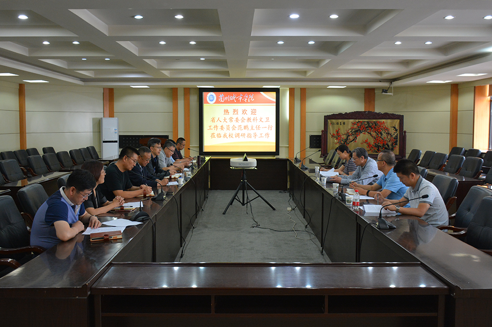 7月8日上午,省人大常委会科教文卫工作委员会主任范鹏一行四人莅临点点官网检查高等教育法贯彻实施情况。校长张有明、副校长赵有翼和学校相关职能部门负责人参加了工作汇报会。
