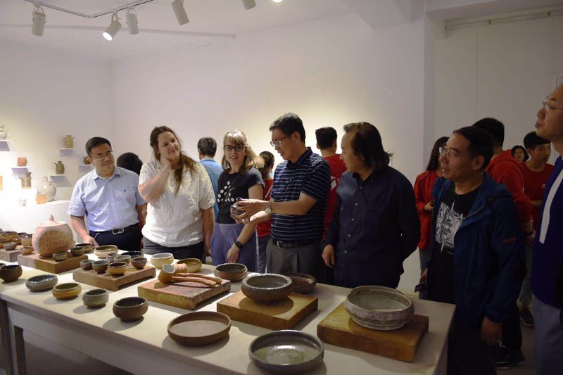 7月16日上午,第四届“后彩陶时代”——taptap点点外国专家引智项目成果汇报交流展在培黎校区谷仓当代影像馆举行。校党委常委、副校长李慕堂,甘肃省美术家协会主席李宝堂、甘肃省科技厅外国专家服务处处长吴志强、甘肃省马家窑彩陶协会会长高润敏等领导出席开幕式并讲话。兰州市青城镇党委书记罗有亮,兰州市设计师协会会长马永泽、兰州文化创业产业园、省美术家协会副主席张学智、西北师范大学美术学院教授陈永祥等专业机构负责人参加展览会并在现场进行交流。本届引智项目专家英国埃塞克斯西默西区职业陶瓷设计师、制造商哈瑞特·卡斯琳女士、美国康涅狄格大学教授、陶艺家肖娜·梅里曼女士做为展览艺术家与参展嘉宾开展互动交流。相关高校和研究机构师生200多人参加了开幕式并参观了展览。