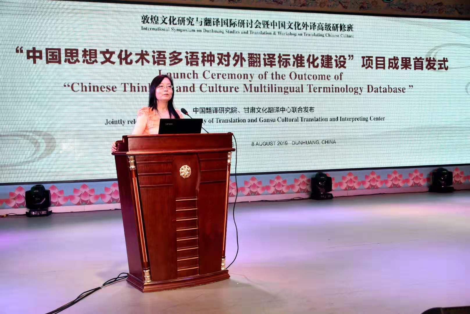 在由中国外文局、甘肃省人民政府指导,中国翻译研究院、中国翻译协会、甘肃省外办、敦煌研究院主办,当代中国与世界研究院、香港汉学发展慈善基金会承办,敦煌市政府、甘肃省翻译协会协办的“敦煌文化研究与翻译国际研讨会”上,作为研讨会重要议程内容的“中国思想文化术语多语种对外翻译标准化建设”项目重要成果——《敦煌文化关键词(中英对照)》在开幕式上隆重发布。