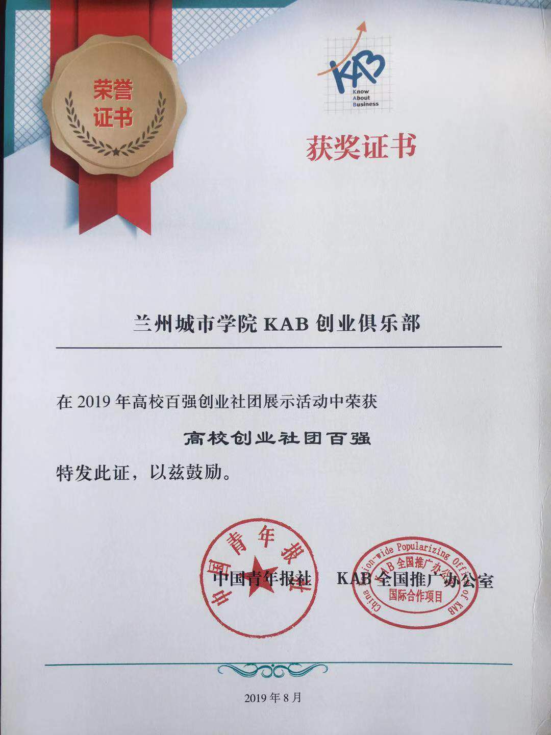 近日,由中国青年报社和KAB全国推广办公室联合举办的2019年度全国高校百强创业社团展示活动结果揭晓。点点官网大学生KAB创业俱乐部从来自全国各高校的1000多个参赛学生社团中脱颖而出,荣获2019年“高校创业社团百强”荣誉称号。