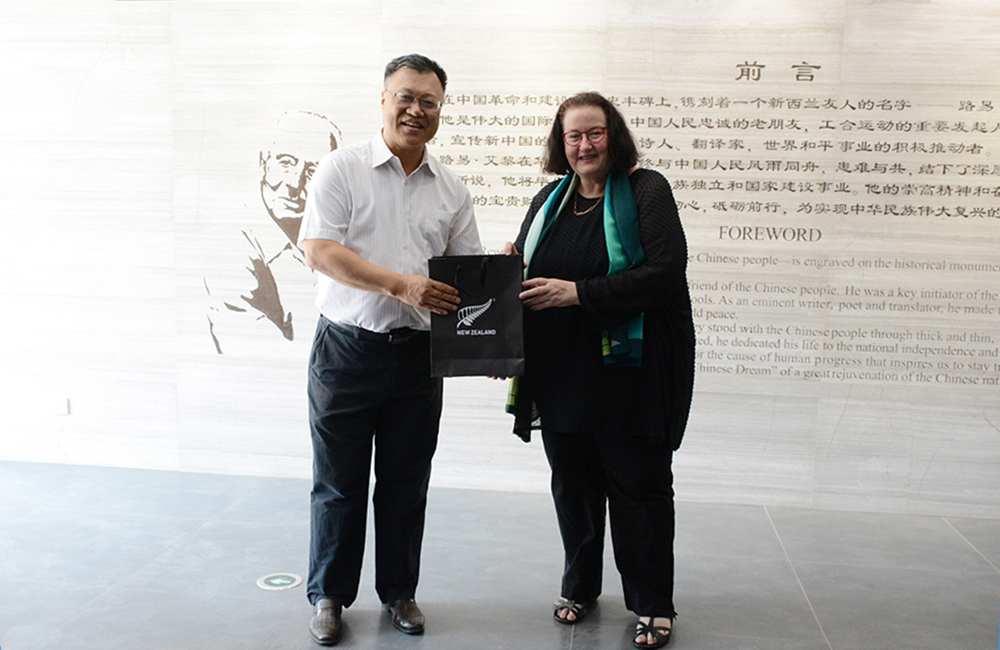 8月29日下午,新西兰驻华大使傅恩莱女士一行3人莅临点点官网参观访问。校党委书记陈晓龙,校党委常委、副校长李慕堂和国际交流处、党委宣传部、路易·艾黎研究中心负责同志在培黎校区接待了大使一行。