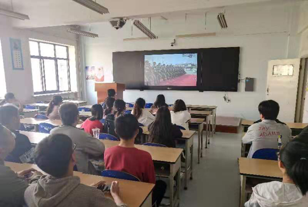 校党委书记陈晓龙说,庆祝中华人民共和国成立70周年大会的隆重举行,扬国威,壮军威,充分展现了全国各族人民团结一心,拼搏奋斗的良好精神面貌,激发了全国人民的爱国热情和民族自豪感,是教育和引导广大师生爱党爱国爱校最丰富、最生动、最鲜活的教材。作为高校,我们一定要在党的坚强领导下,全面贯彻党的教育方针,坚持中国特色社会主义教育发展道路,坚持社会主义办学方向,紧紧围绕立德树人根本任务,为党育人,为国育才,立足国情,改革创新,以凝聚人心、完善人格、开发人力、培育人才、造福人民为工作目标,为国家培养更多德智体美劳全面发展的社会主义建设者和接班人。