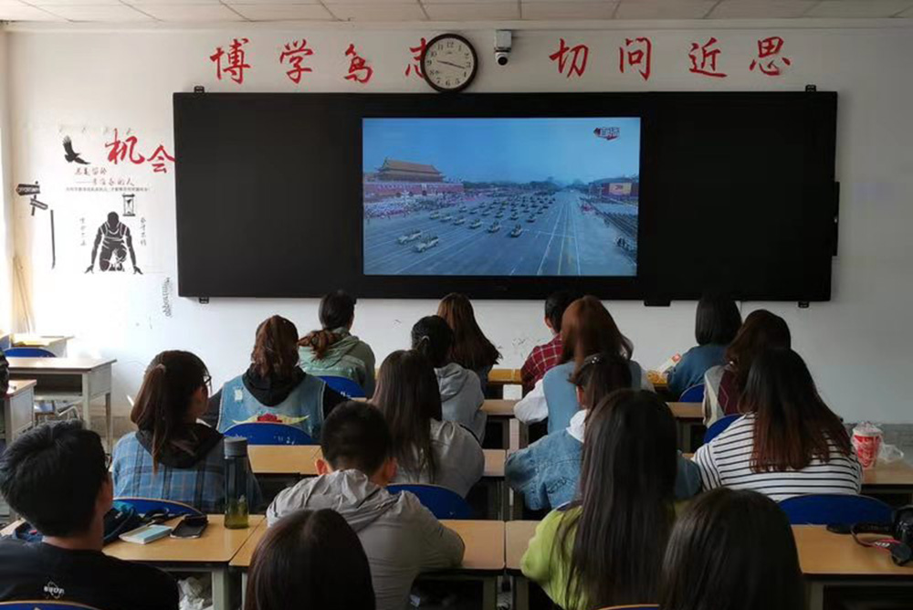 马克思主义学院教师朱玲说,观看了庆祝大会和阅兵仪式,激动、自豪、感慨和振奋之情油然而生、无以言表。作为一名奋战一线的思想政治理论课教师,我一定要把爱国主义的精神和情怀深度融入到思想政治理论课教学中,把“爱我中华”的种子种到青年大学生的心田里。