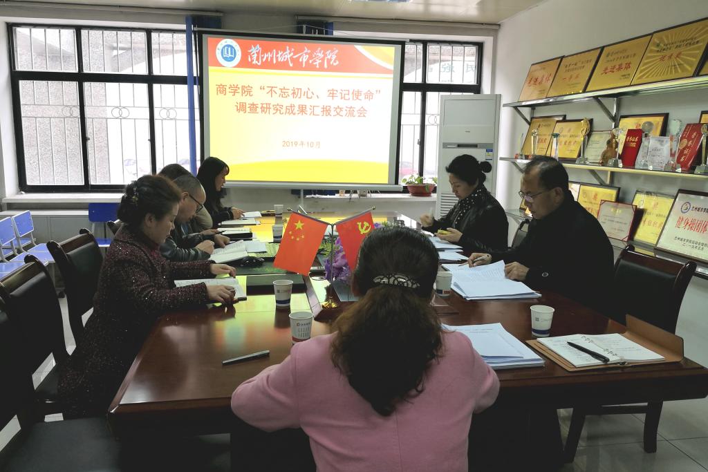 交流会上,学院党委书记刘慧汇报了学院“不忘初心、牢记使命”主题教育调查研究工作总体情况。学院处级干部分别以《学生宿舍电器使用的参与式研究》《taptap点点商学院专业实习认知现状调查研究》《学术忠诚和学术道德建设调研报告》《商学院青年教师教学基本情况研究》为主题汇报调研成果,找准了存在的问题,提出了切实可行解决问题的思路与方法。