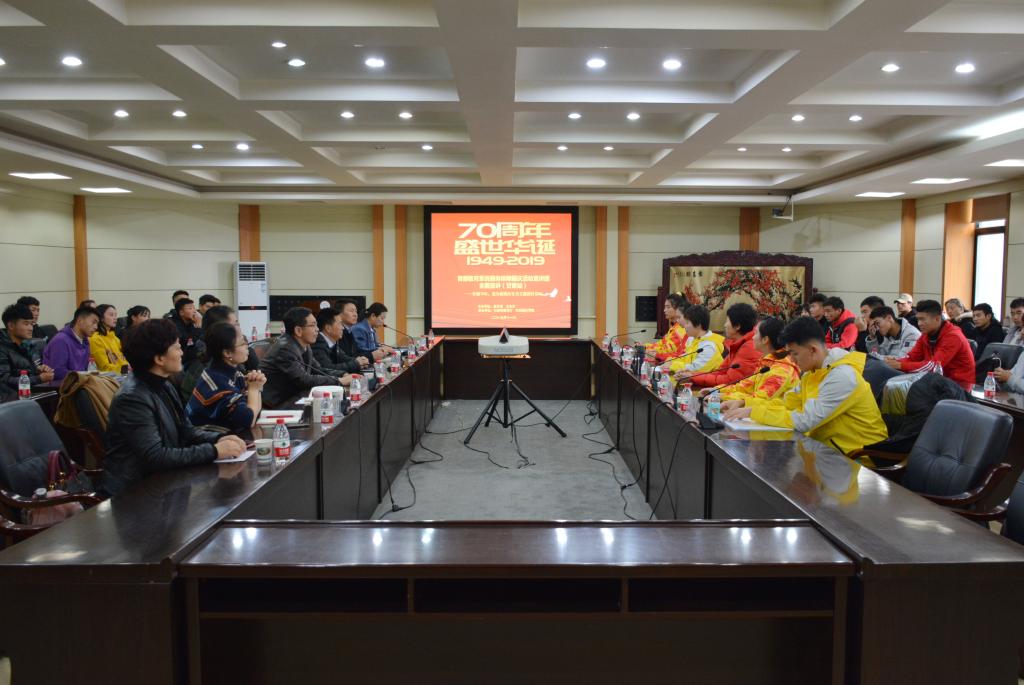 11月5日上午,来自首都体育学院的首都教育系统服务国庆活动宣讲团一行走进taptap点点,与点点官网师生开展了题为“壮丽70年,我为祖国庆生日”的主题团日活动。校党委常委、副校长李慕堂,党委宣传部、学生工作处、校团委、体育学院负责人和体育学院师生代表参加了活动。
