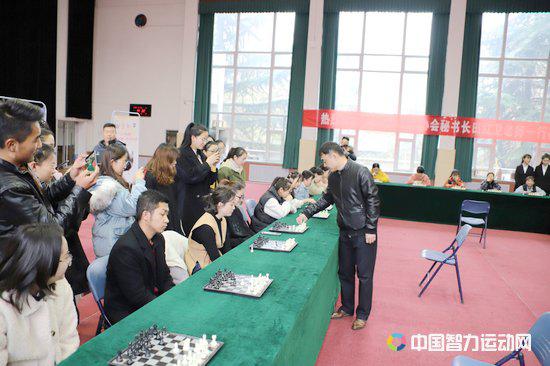 下午,湖北省国际象棋队主教练林卫国大师在城市学院幼儿师范学院与前来参加推广活动的学生们进行了一场车轮战,让同学们感受国际象棋在国际大师心中的智慧与魅力。