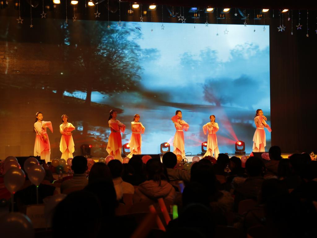 晚会上,歌舞、小品、乐器联奏等精彩的节目为观众呈现了丰盛的视听盛宴。端庄秀美的古典舞《归去来兮》《知否知否》《琵琶行》,展现东方少女柔美静怡;热情奔放明媚张扬的爵士、现代舞《Forever young》《Combustible》、《fire》释放出的青春的激情;歌曲《像我这样的人》以实力唱功博得了全场的掌声;小品《要爱不要伤害》,将大学生的恋爱百态用用诙谐的语言、夸张的肢体展现得淋漓尽致;歌曲串烧《青春拂晓》选取了在学生中广泛传唱的经典曲目;整场晚会精彩不断,高潮迭起,赢得台下阵阵掌声,欢呼声一浪高过一浪。晚会在一首由商学院全体党员深情合唱歌曲《不忘初心》中圆满结束,歌声中饱含着同学铿锵自信和对祖国的热爱,绽放着青春与梦想的光芒。