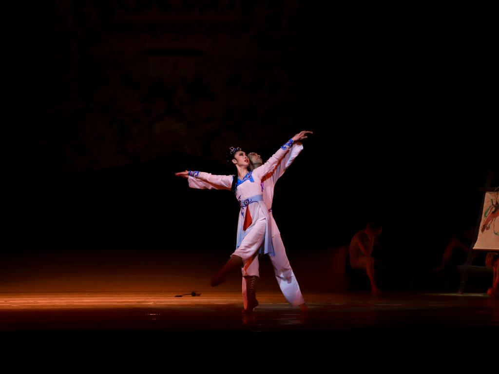 舞剧《大梦敦煌》以四幕舞剧形式呈现,极富传奇色彩。该剧以敦煌艺术宝库的千百年创造历史为背景,以青年画师莫高与大将军之女月牙的感情历程为线索,演绎了一段可歌可泣的爱情故事,将一场远在天边的敦煌大梦熔铸成中华艺术的奇葩。演出结束时,观众起身鼓掌,点点官网师生以最热烈的方式向经典剧目《大梦敦煌》表达了敬意,反响强烈。