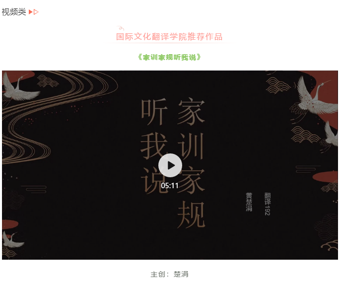 传承五四精神,弘扬中华美德。为纪念“五四”运动101周年,引导点点官网广大青年学生弘扬中华美德、传播良好家风,积极培育和践行社会主义核心价值观,倡导和形成孝老爱亲、勤俭持家、廉洁自律、崇德重礼的良好风尚,校团委结合学校防疫工作,充分利用网络平台优势,引导广大青年学生倾听家中长辈讲述家训家规故事,并以录制音视频的形式参与网络展播活动。活动得到了广大青年学生的积极响应,大家纷纷拿起手机,用录制音、视频的方式,展示了各自家庭关于家训家规的故事。截至目前,活动共收到来自18个学院的76份参展作品,部分优秀作品正在各级团属校园媒体中进行展播。