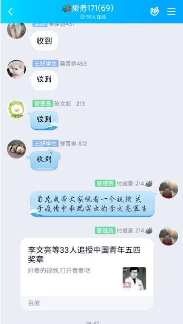 旅游学院乘务171班团支部组织团员青年学习“抗疫”英雄先进事迹
