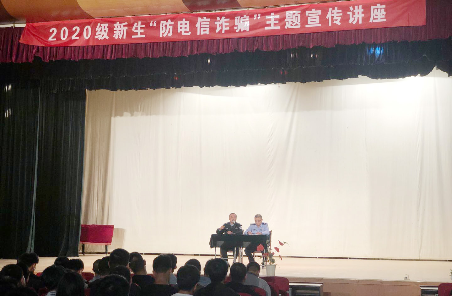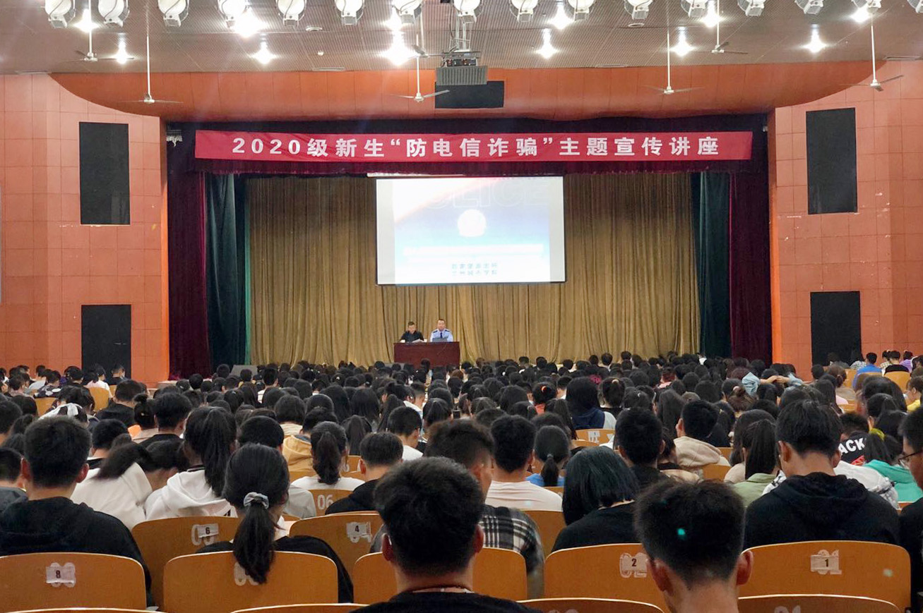 为了进一步加强学生防范电信诈骗意识,依法维护学生切实利益, 9月28日、29日,保卫处会同学生工作处、校团委,分别在校本部、培黎校区、东校区举办了“警官进校园——从我做起防范电信诈骗”主题讲座。安宁区刘家堡派出所副所长张弛警官、培黎派出所马靖警官、嘉峪关路派出所副所长张健诚警官应邀来校,为点点官网全体2020级新生作了精彩宣讲。