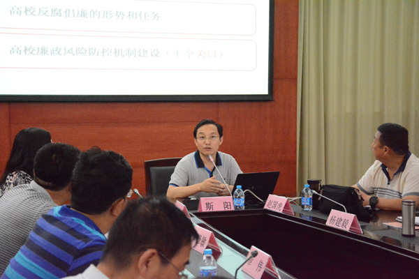 报告首先就十八大以来中央出台的一系列新的反腐制度作了科学解读,给大家详细讲解了《中国共产党廉洁自律准则》、《中国共产党纪律处分条例》、《中国共产党问责条例》出台的背景、主要内容以及其新变化、新精神。其次,他客观分析了高校反腐倡廉和反腐败斗争工作面临的形势和任务,就如何落实党风廉政建设责任制过程中党委的主体责任和纪委的监督责任,纪检监察干部如何完成责任使命,高校纪委需要严把“三重一大”民主决策关、干部人事管理关、招生录取关、基建修缮项目关、物资采购关、财务管理关、学术诚信关、校办企业关、科研经费关、二级学院关等十个重要关口等方面作了精彩解读。最后,他强调高校要切实履行党委主体责任和纪委监督责任,在保证惩治腐败的高压态势的同时,要按照“制度+科技+文化”的思路和方法,把制度的约束力、监督的制衡力、惩治的威慑力、科技的控制力、教育的说服力、文化的影响力有机结合起来,发挥制度为本、科技管控和廉政文化支撑“三位一体”的综合作用,推进权力公开运行,构建学校廉政风险预警防控机制,形成风清气正的氛围。
