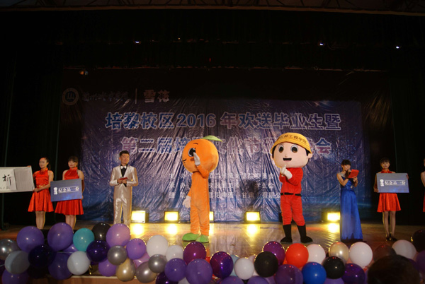 一朝相聚、倾情离别,情系母校,师情永驻。民族舞《天赐吉祥》、古典舞《美人吟》的演员们步履轻盈、衣袖翩翩,引起现场观众的热烈掌声;舞蹈《轮舞》用轮滑这一特殊的形式和演员们身着印有“祝毕业生前程似锦”字样的衣服,表达了他们对于毕业生的祝福;歌曲串烧《光辉岁月》、独唱《一生有你》表达了毕业生们对母校的眷恋之情;由东校区和培黎校区带来的现代舞《shake it》、《you are pitiful》节奏快慢交叠、舞步矫健青春,充分表现了学子的依依不舍之情;服装走秀《Dream》充分体现了学子践行“手脑并用创造分析”校训精神的风采;由培黎校区学生会成员带来的歌曲《海阔天空》送上了他们对师兄师姐们的美好祝愿;男子双人舞《风与少年》表现了大学生勇于承担时代使命,勇敢追逐梦想的毅力和决心。晚会现场,来自外国语学院的毕业生代表姚琦表达了自己对于母校的感恩之情,向大家述说了自己对于未来期许,并向在校生送上自己最真挚的祝福。晚会最后在培黎校区老师们带来的歌曲串烧《同桌的你》中圆满落下帷幕。