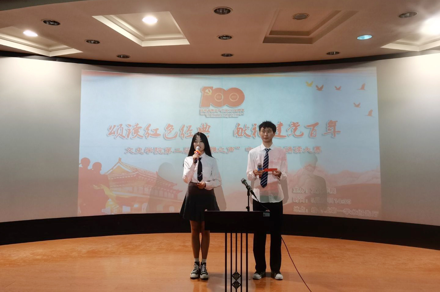 南湖红船明星启,革命烽火神州燃。5月28日下午,文史学院庆祝中国共产党成立一百周年暨第二届“大雅之声”中华经典诵读大赛在校本部第一学术报告厅举办。本次大赛以“诵读红色经典,献礼建党百年”为主题,来自中文系、历史系19级各班级18、20级部分班级的参赛选手用诗歌礼赞中国共产党百年乘风破浪、领航中华民族伟大复兴的壮阔历程,重温历史征程,赓续精神血脉。