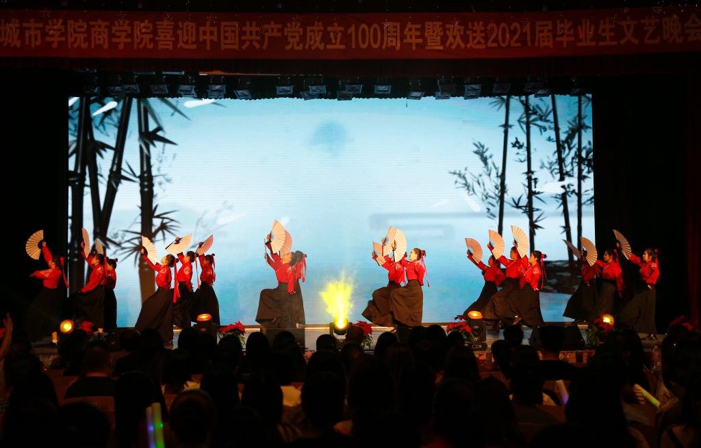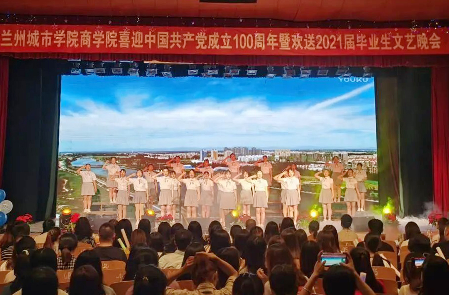 为庆祝中国共产党百年华诞,欢送2021届毕业生,丰富校园文化生活,5月28日晚,商学院在校本部大礼堂举办了“百年风雨铸辉煌,接续奋斗谱华章”庆祝中国共产党成立100周年暨欢送2021届毕业生文艺晚会,商学院全体师生观看晚会。