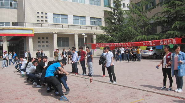 为增强大学生体质,响应共青团中央、教育部等四部门倡导的广泛开展大学生“走下网络、走出宿舍、走向操场”主题群众性课外体育锻炼活动号召,4月17日,培黎工程技术学院在培黎校区何克广场举办“凝心聚力”拔河比赛,300余名同学参加了比赛。通过比拼,最终焊接132班获得冠军,电信133班获亚军,焊接131班获季军,电信141班获优秀组织奖,焊接141班获精神文明奖,交通131、交通132、机制141、物理141、能源141获优胜奖。