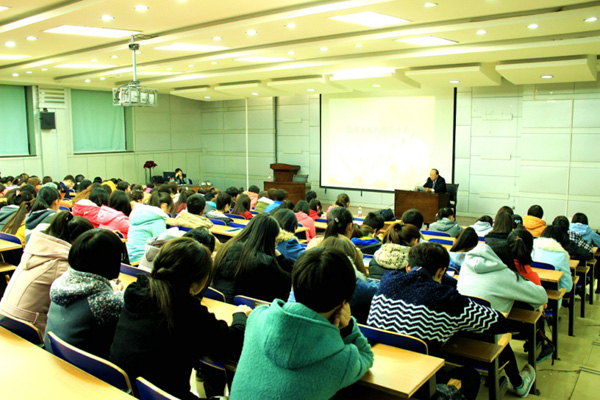 11月20日晚,教育学院举行学术交流月活动校外专家首场报告会。西北师范大学教育技术学院张筱兰教授应邀作学术报告,报告题目是《信息技术支持下的课堂教学变革》。教育学院小学教育专业、数学学院数学教育专业200余名学生聆听报告。