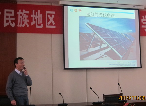 报告会上,李世民研究员从新能源发展概况、太阳能光伏发电及应用、光伏电池生产工艺、光伏发电类型、光伏发电系统设计与施工、光伏发电存在的问题等六个方面作了详细的讲解分析,并就结合地域特点阐述了甘肃省太阳能光伏发电技术的发展现状和应用前景。