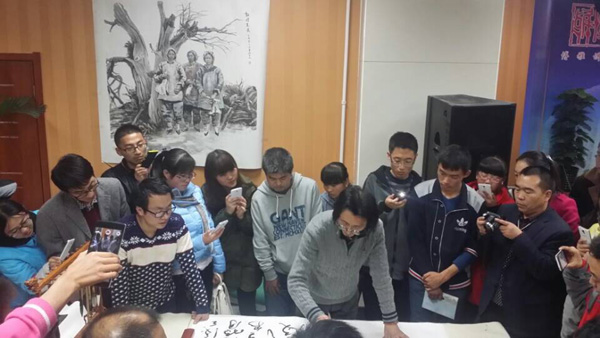 讲座结束后,陈文明教授就自己讲授的书写技能进行了现场示范,并将示范作品赠送给中心作为留念。