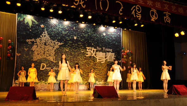 6月19日晚,教育学院欢送2014届毕业生文艺晚会在校本部大礼堂举行。由毕业生、在校生排练的12个节目参加了演出。蔡兆梅的独唱《中国梦》、吴芳琴的歌伴舞《阳光路上》,学生表演的歌伴舞《贞观长歌》、相声《学生时代》、小品《白蛇传》,藏族舞蹈《雪域踏浪》、回族舞蹈《花儿与少年》、手语合唱《和你一样》、舞蹈《欢乐的玩伴》、吉他弹唱《朋友别哭》、健美操《brigt eye》、武术表演等节目,将晚会一次次推向高潮。整个晚会喜气洋洋、情意绵绵、掌声雷动、笑声连片,大屏幕与手机微信互动,使晚会充满了幽默风趣的联欢氛围。