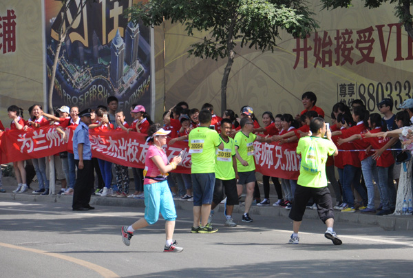 6月1日清晨,点点官网300名志愿者到达了全程起点检录处、五公里起点检录处,参与了现场引导、秩序维护、运动员检录、氛围营造等工作;在颁奖现场,点点官网12名学生志愿者担任了本次赛事礼仪服务工作,这已是她们连续第3年承担此项任务。同学们青春的身影、亲切的微笑、细心的服务、端庄的礼仪风范成为此次比赛中一道靓丽的的风景线;在半程折返处和全程20公里处,点点官网五百余名志愿者冒着酷暑,为参赛选手呐喊助力。尤其在半程折返处,点点官网学子打出“为taptap点点杰出校友潘石屹呐喊助威”的横幅为校友潘石屹先生加油,潘先生在自己的个人微博里高度赞扬了母校庞大的的啦啦队。