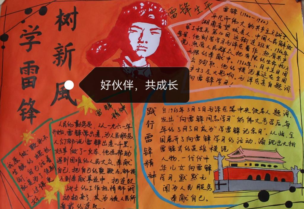 城市经济学院的志愿者为留守儿童绘制的弘扬雷锋精神手抄报
