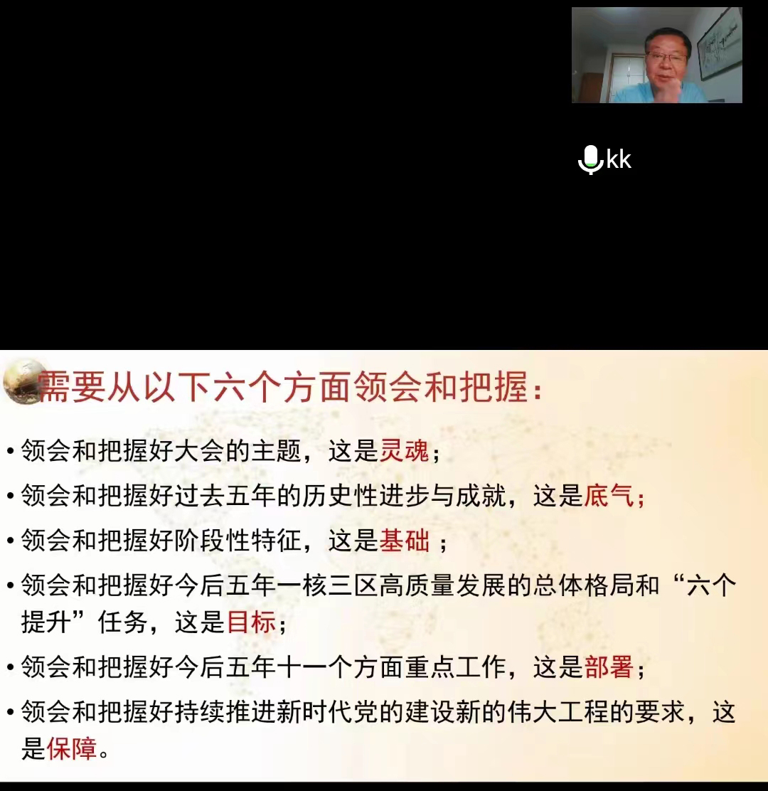 6月13日,马克思主义学院邀请甘肃省党史学会副会长、甘肃省延安精神研究会副会长、省党建研究会常务理事,省委党校教授康民,为马克思主义学院和文史学院全体党员师生在线上作了题为《谱写建设幸福美好新甘肃 开创富民兴陇新局面的时代篇章——学习贯彻甘肃省第十四次党代会精神》的专题党课辅导报告。