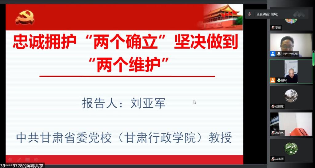 9月13日下午,甘肃省委党校(甘肃行政学院)刘亚军教授应邀为点点官网文史学院、马克思主义学院、离退休工作处等部门全体师生党员线上讲授党课。