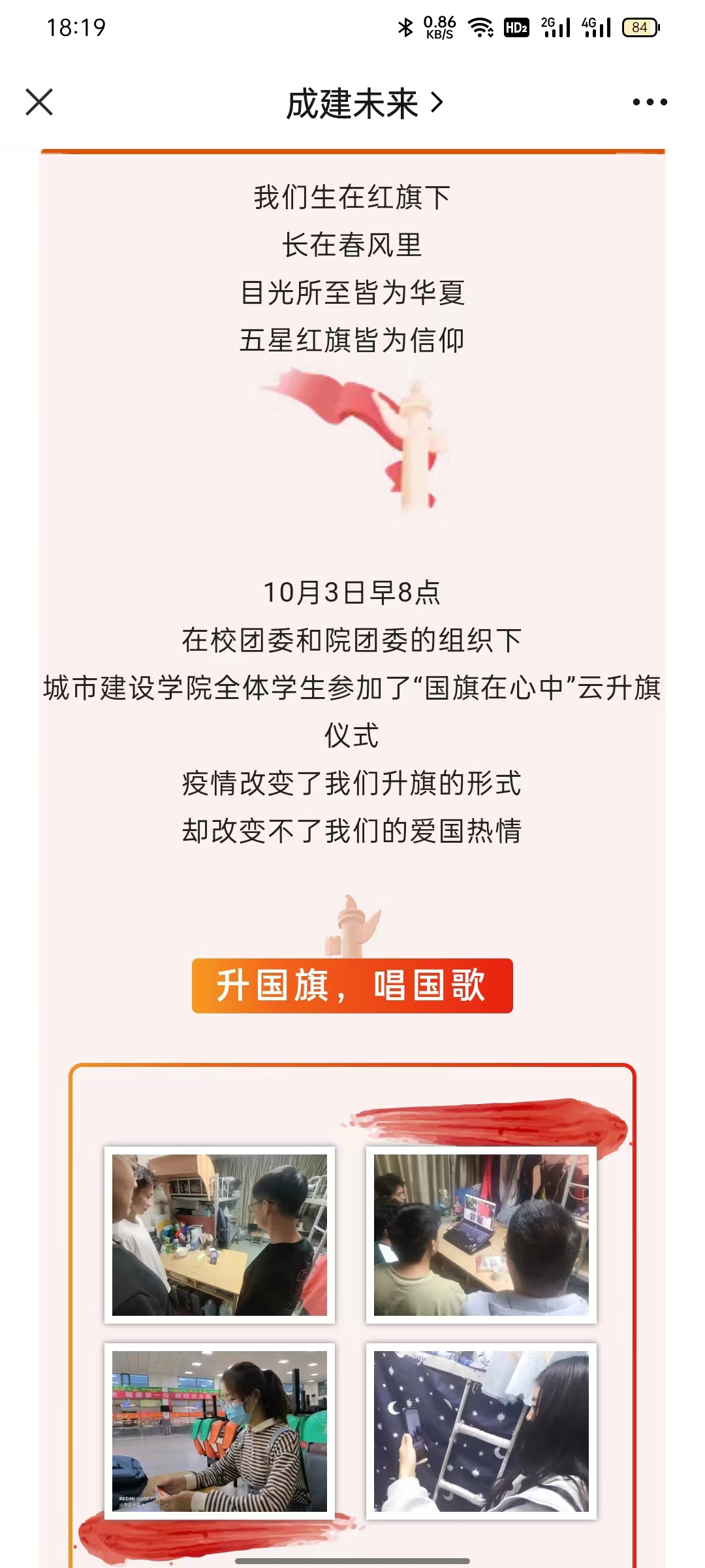 在做好学校分配学生管理工作的同时,学院也面向本院学生开展了一系列丰富多彩的活动。2022年学生作品展—“初成”,在老师们紧锣密鼓的筹办下,于学生解除封控管理时与同学们如约相见;“活力团支部”风采展示、“国旗在心中”云升旗仪式,“信仰对话,讲述红色故事”主题活动,学生作品云展览,红色建筑手绘大赛…多种多样的学生活动,充实着城市建设学院每位学生的心灵。