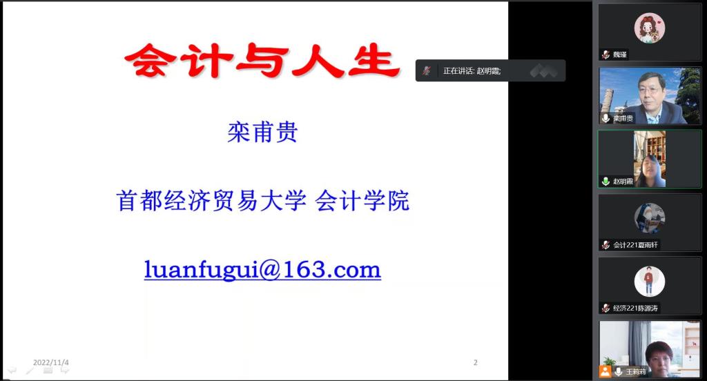 11月4日下午,应城市经济学院邀请,首都经济贸易大学博士生导师栾甫贵教授作了题为《会计与人生》的报告,全体2022级新生聆听了报告。