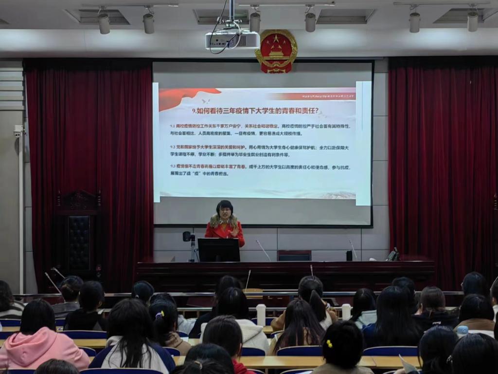 广大思政课教师从国家疫情防控政策优化调整、国家经济发展形势、大学生就业形势、回归常态化校园学习生活等方面,深入解读国家的大政方针和党的执政理念,回应大家普遍关注的主要问题、存在的思想困惑和实际需求,教育引导广大青年坚定理想信念、锤炼过硬本领、涵养为民情怀,立志做有理想、敢担当、能吃苦、肯奋斗的新时代好青年,推动学校“时代新人铸魂工程”落地落实落细。
