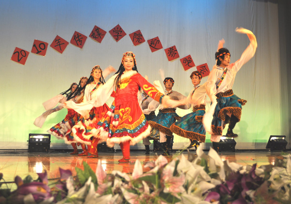 为促进校园文化向着高尚、创新、进步发展,树立大学生正确的价值观,构建和谐校园,使新生更快地融入到大学生活中。近日,传媒学院在培黎校区大学生活动中心举办了以“构建和谐校园”为主题的迎新文艺晚会。兰州大学新闻与传媒学院、西北师范大学教育与传媒学院、西北民族大学教育传播学院学生代表与传媒学院全体师生1000多人参加了晚会。