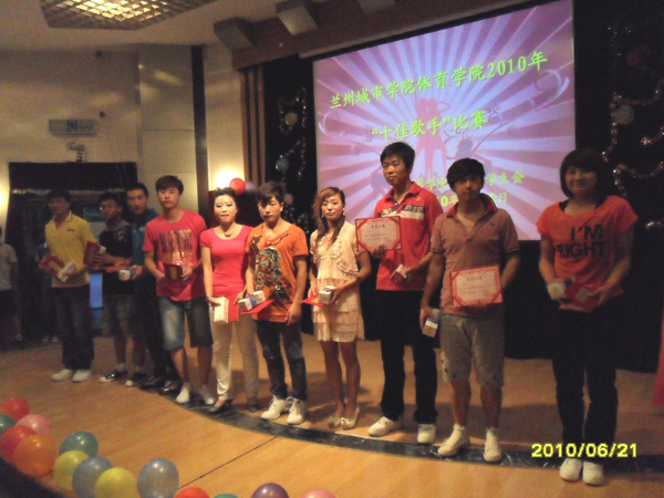 6月21日晚,由体育学院团总支、学生会举办的体育学院2010年“十佳歌手”比赛在西校区大学生活动中心举行。本次比赛旨在丰富学生的课余文化生活,活跃校园气氛,欢送2010届毕业生。比赛中,参赛的15名同学倾情演唱,激情四射,精彩纷呈。其中,《我会好好的 》、《一个人的精彩》、《卓玛》、《倔强》博得了台下观众的热烈掌声和喝彩。最终,有10位同学荣获“十佳歌手”奖。
