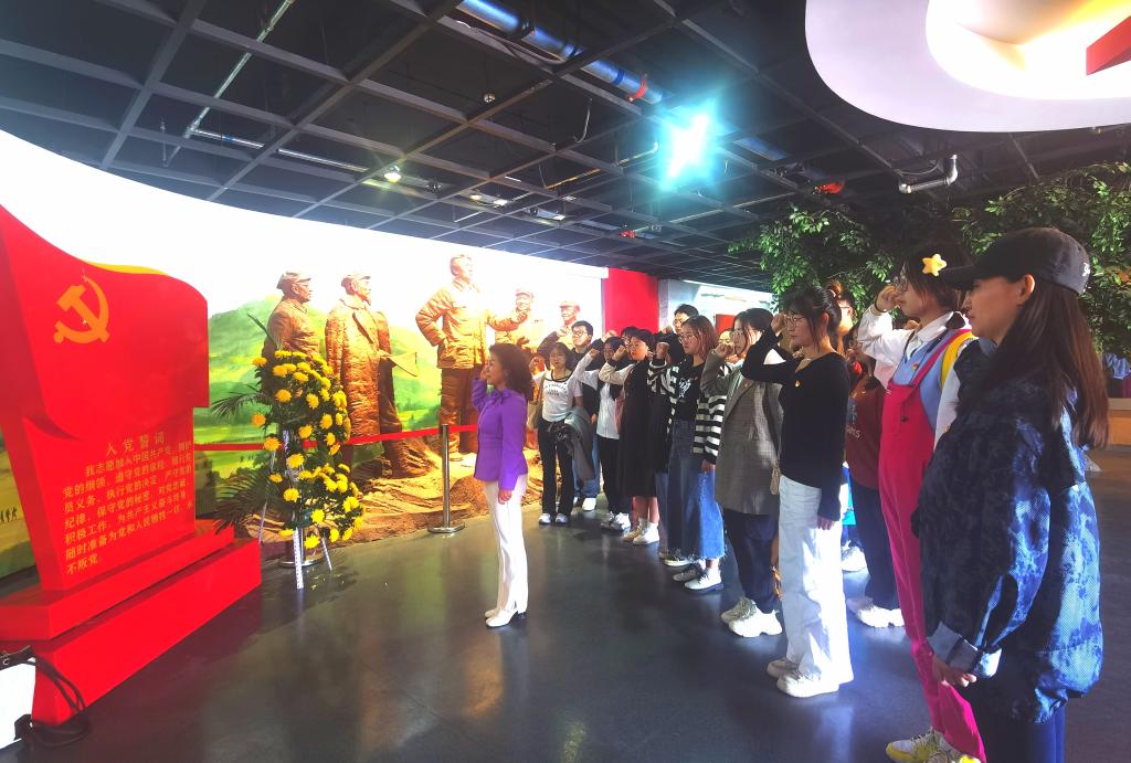 全体党员在学院党总支负责人的领誓下,面向党旗重温入党誓词,洪亮的宣誓声响彻整个纪念馆。跟随讲解员的讲述,同学们认真参观学习展厅陈列的一幅幅珍贵革命图片、文献资料及革命先烈实物,仔细聆听“红军长征在哈达铺”的红色历史,回顾毛泽东等老一辈革命先烈为中华民族解放所付出的心血以及对党、对人民作出的巨大贡献。
