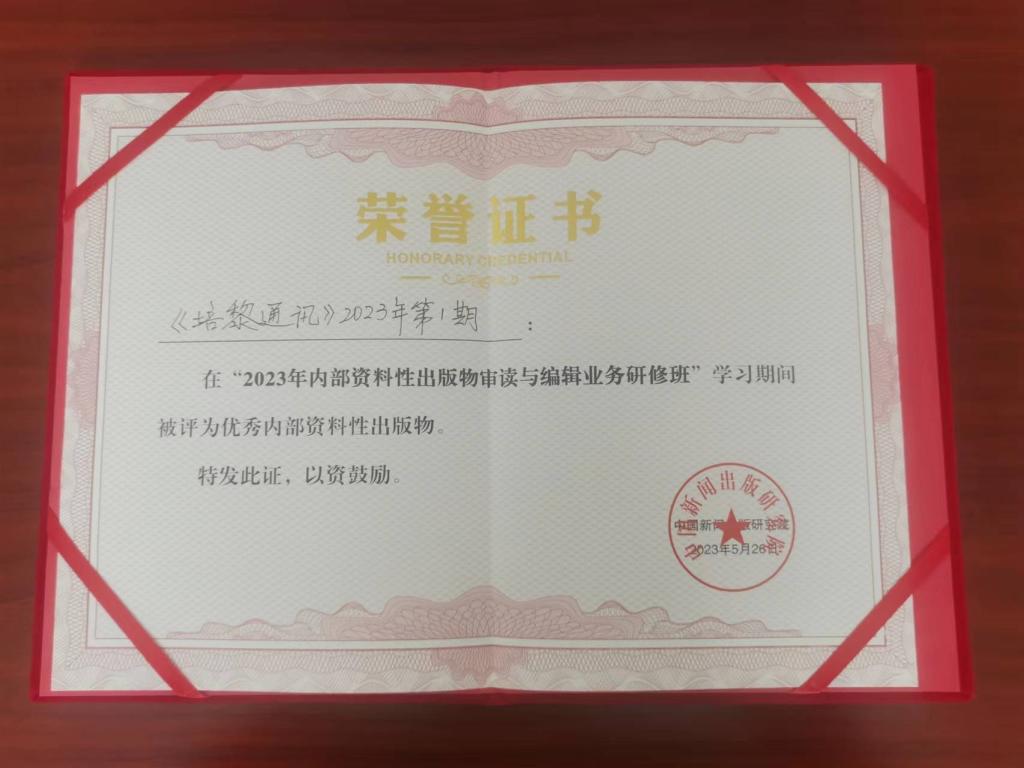 本次研修班共提交了100余份内部资料性出版物。10多位专家严格对标国家新闻出版广电总局《内部资料性出版物管理办法》进行了认真审读和评议,最终评选出30余份优秀资料颁发证书予以表彰奖励。《培黎通讯》以规范的标识、良好的编印质量和彰显国际主义精神和红色基因特色名列其中。