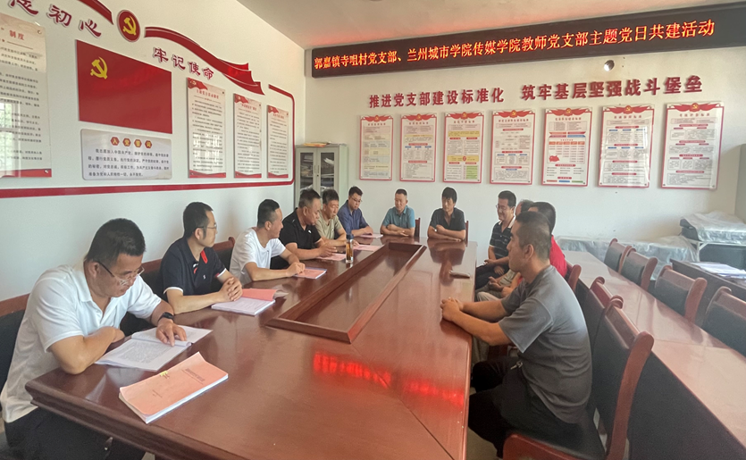 为深入学习贯彻习近平新时代中国特色社会主义思想主题教育,推进基层党建工作,8月23日,传媒学院教工党支部赴秦安县郭嘉镇寺咀村开展主题党日共建活动。双方支部党员代表、学校驻村帮扶干部参加会议。