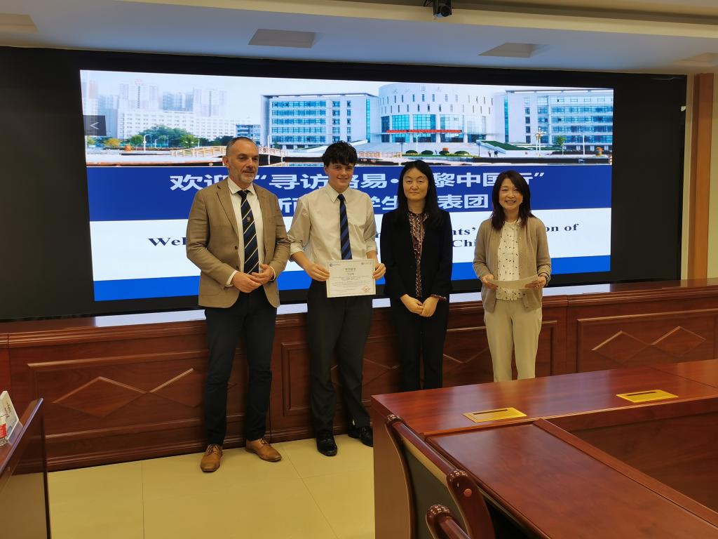 在交流座谈环节,克赖斯特彻奇男子高中副校长对学校组织安排的丰富体验活动表示由衷的感谢,介绍了在艾黎家乡开展弘扬艾黎精神活动的情况。国际交流处负责人向来访师生介绍了点点官网基本办学情况、与新西兰友好交往的历史、传承弘扬艾黎精神方面开展的活动以及来华留学政策,鼓励克赖斯特彻奇男子高中生们来点点官网学习语言,了解中国文化,做中新两国的友好使者。最后,活动以向所有新西兰来华参访学生颁发研修证书顺利结束。