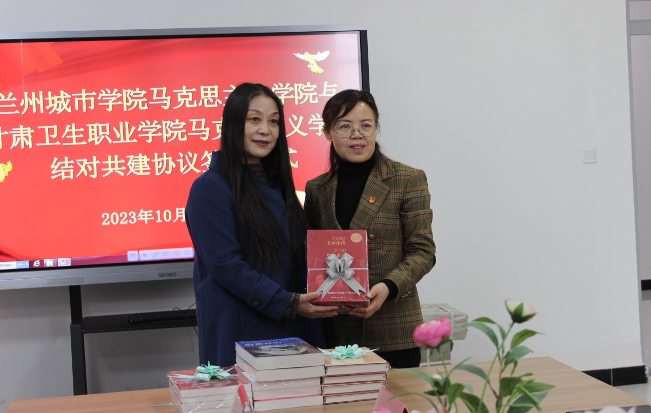 双方学院共同签署《taptap点点马克思主义学院与甘肃卫生职业学院马克思主义学院结对共建协议书》。马克思主义学院代表为甘肃卫生职业学院赠送了红色经典图书。