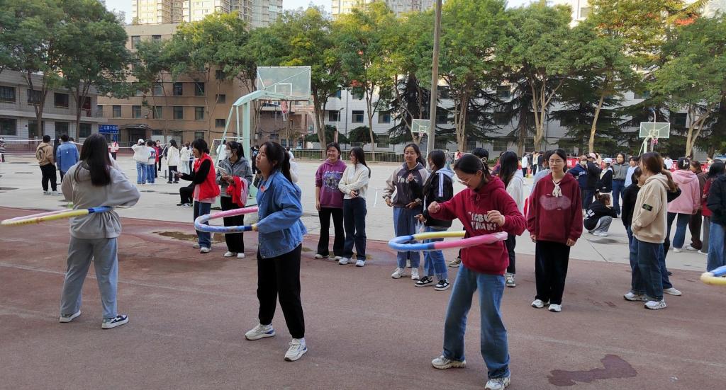 本届“迎新杯”文体活动设羽毛球、乒乓球、跳绳、呼啦圈、篮球、足球六项比赛,各班学生积极报名参加。足球比赛的精彩瞬间不仅留存在参赛队员的脑海中,也让场边观战的同学们感受到了足球运动的魅力。篮球、羽毛球、乒乓球赛场上紧张激烈的角逐,激发了同学们勇于拼搏的斗志。跳绳参赛成员精神抖擞,全心投入,分秒必争。在呼啦圈比赛场地上,上百名同学手持五颜六色的呼啦圈,彰显“生命在于运动”的健康理念。