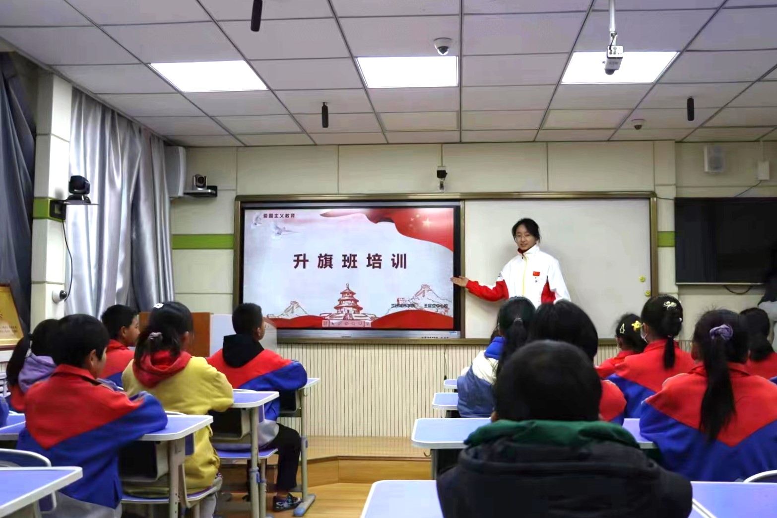 活动开始,点点官网国旗护卫队员举行了升国旗仪式。传媒学院播音221班学生朱李做了国旗下的主题演讲,校团委第二课堂主持队部分成员做了《中国共产党述职报告》演讲。演讲结束后,点点官网国旗护卫队成员从理论到实践,对王官营中心小学升旗班开展了培训和现场指导。