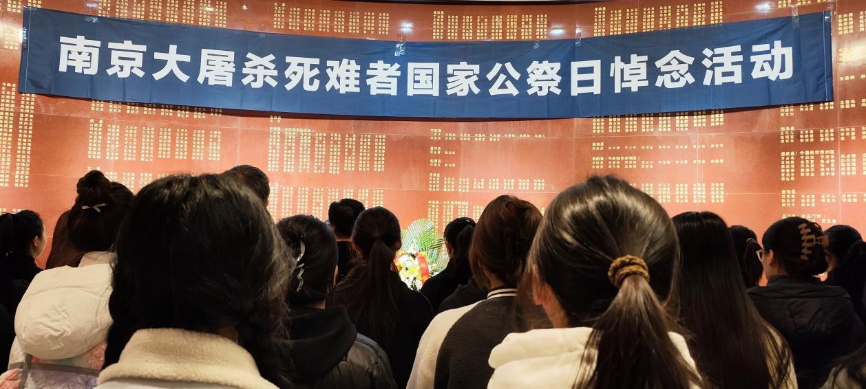 活动中,思政课教师和同学们一起向南京大屠杀死难者默哀,为同学们讲述南京大屠杀的史实,组织观看《三十万同胞的墓碑:期待“找回”更多的名字》等短视频,教育引导同学们勿忘历史,继承先烈遗志,传承红色基因,赓续红色血脉,努力学习、增强本领、增长才干,为在日实现中华民族的伟大复兴贡献青春力量,让和平的薪火代代相传。同学们交流了认识体会,纷纷表示,将不忘历史,奋发图强,坚定不移听党话、跟党走,在新时代展现新担当新作为,为全面建设社会主义现代化国家作出新的更大贡献。