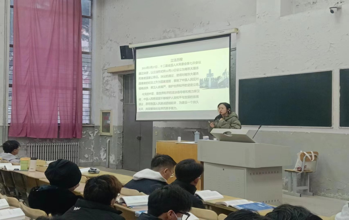 12月13日,马克思主义学院组织全体有课思政课教师,在教学班级开展“国家公祭日”思政教育。