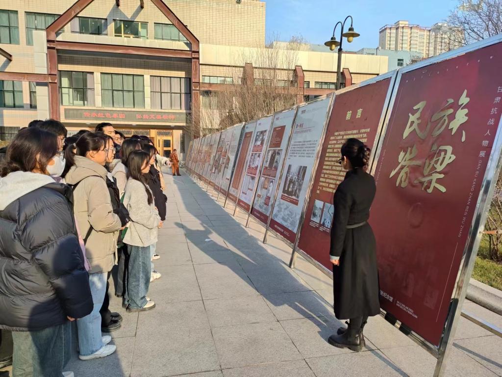 展览包含“甘肃国统区坚持抗战的共产党人”“陇东抗日民主根据地代表人物”“参与甘肃抗战的爱国人士”“甘肃抗日救亡运动中的文化界人士”“甘肃籍在外抗战英烈”“参与甘肃抗战的国际友人”6个单元,20余幅主题展板。活动中,师生们分组有序参观展览,认真倾听讲解员生动精彩的讲解,一幅幅革命图片、一个个革命先烈、一件件革命事迹,把大家带回到峥嵘的革命岁月。