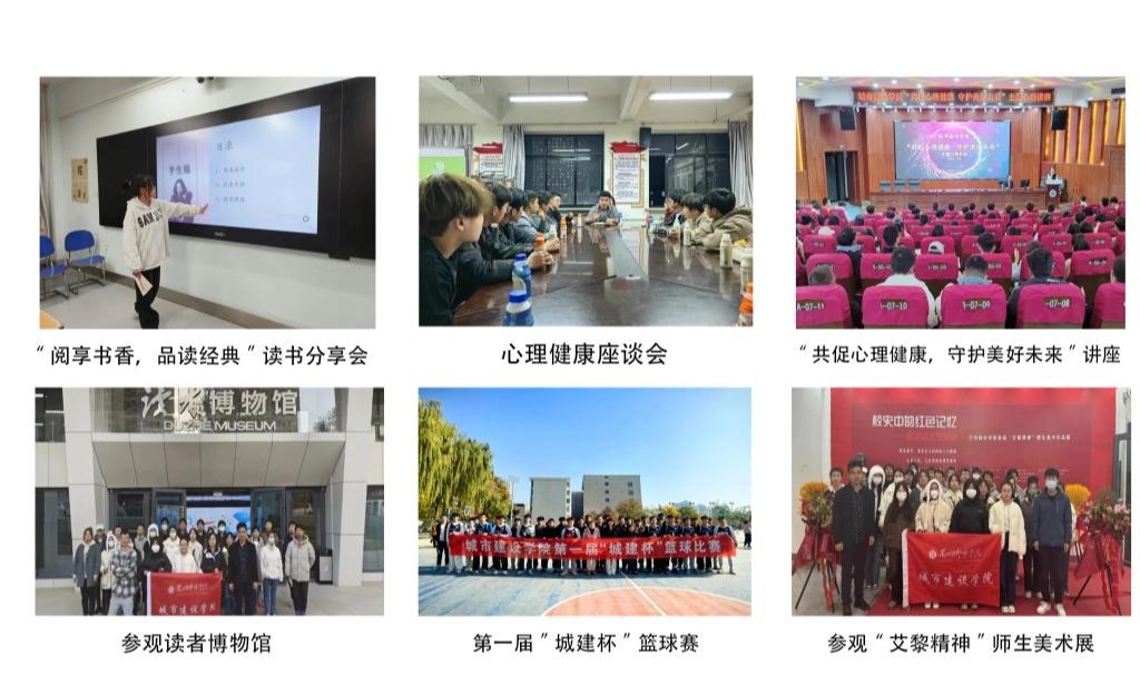 文体赋能,愉悦身心。学院积极组织内容丰富、形式多样的文体活动,开展第一届“城建杯”篮球赛、“阅享书香,品读经典”读书分享会、主题心理健康讲座、“搭建跨省学生心理适应桥梁”心理健康座谈会,参观taptap点点首届“艾黎精神”师生美术作品展、读者博物馆,帮助同学们增强体质、锤炼意志、培养情操。
