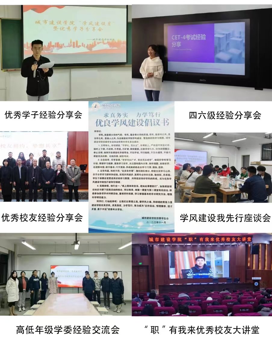 为进一步弘扬“勤奋、严谨、求实、创新”的优良学风,培养学生良好的学习风气,营造浓厚的学习氛围,城市建设学院11月1日以来开展了“学风建设月”系列活动,随着“无作弊班级”创建活动的开展,“学风建设月”活动圆满落幕。